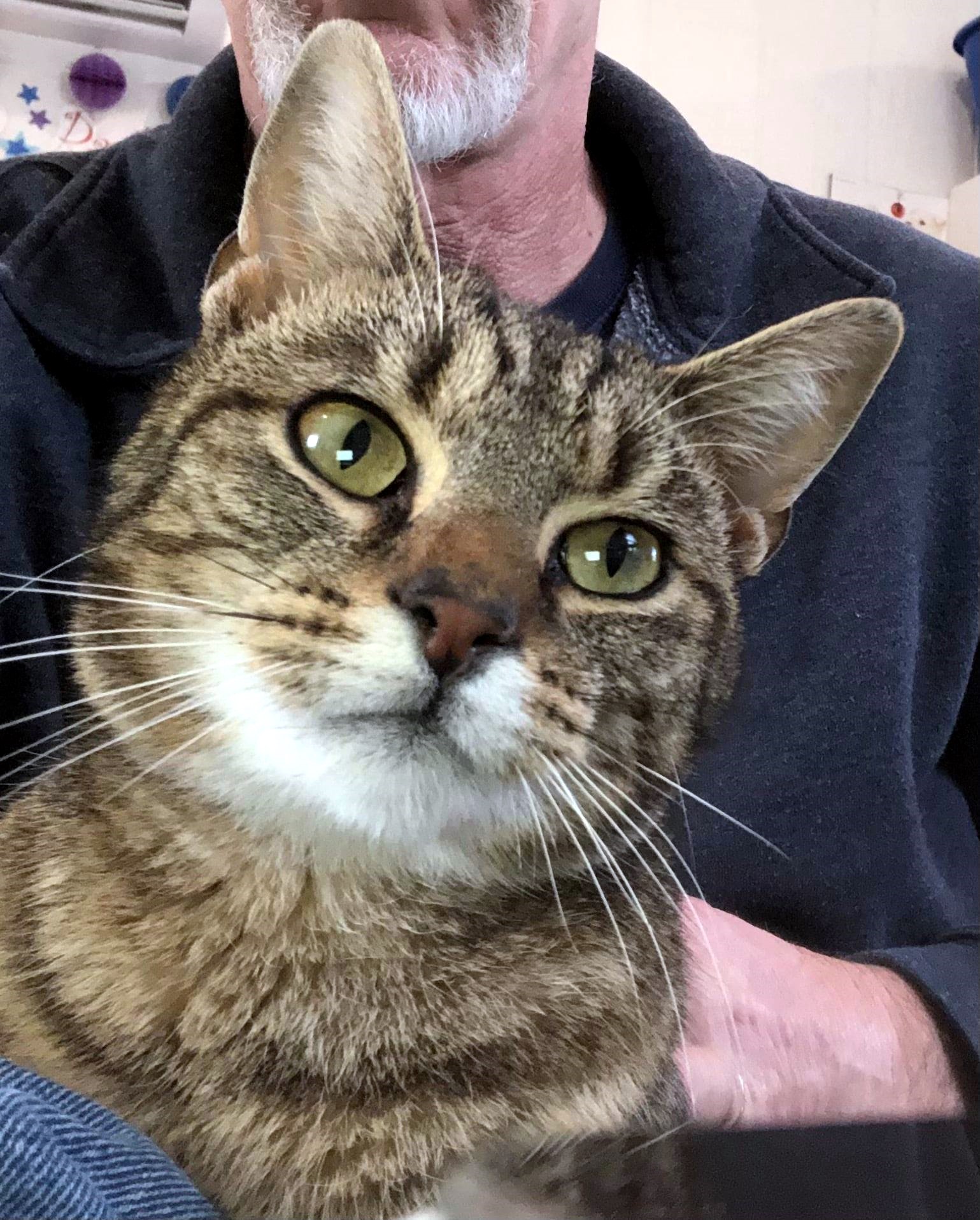 Paulie is an adult neutered male tabby who was hit by two cars. He had emergency medical treatment but unfortunately lost his right back leg. Paulie has adapted well and is moving around without a care. He is very loving and affectionate and gets along well with other cats. He loves to sit on your lap. Paulie is fully vetted and house trained.