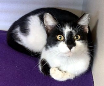 Stonewall is a handsome 1-year-old neutered male domestic shorthair with unusual markings and mesmerizing green eyes. He is fully vetted and litter box trained. Stonewall is a friendly boy and would make a great companion.