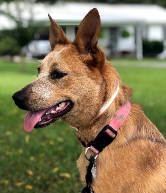 Ginger is a 1-year-old, 40-pound spayed female Australian cattle dog/blue heeler mix. She gets along with other dogs although she is a little scared of bigger dogs. She is a smart girl who obeys several commands. Ginger spent most of her young life outdoors, but she would love to learn to live inside with her forever family. She walks well on a leash and loves people. Find her through the Humane Society of Clarksville-Montgomery County, 931-648-8042, www.petfin-er.com/shelters/TN07.html