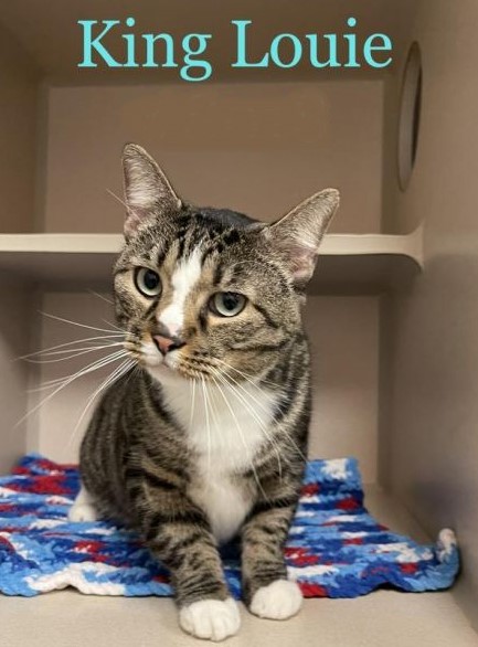 King Louie is an adult male with domestic shorthair who was found as a stray. He is neutered and litter box trained. This large boy would make an excellent companion. He loves to play with balls.