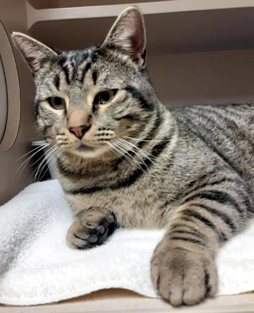 Maggie is a beautiful young spayed female tabby. She is a quiet girl who will give you love once she warms up to her new environment. Maggie is fully vetted and litter box trained. She gets along well with other cats. Find her through the Humane Society of Dover-Stewart County, 931-305-8212, www.petfinder.com/shelters/TN113.html