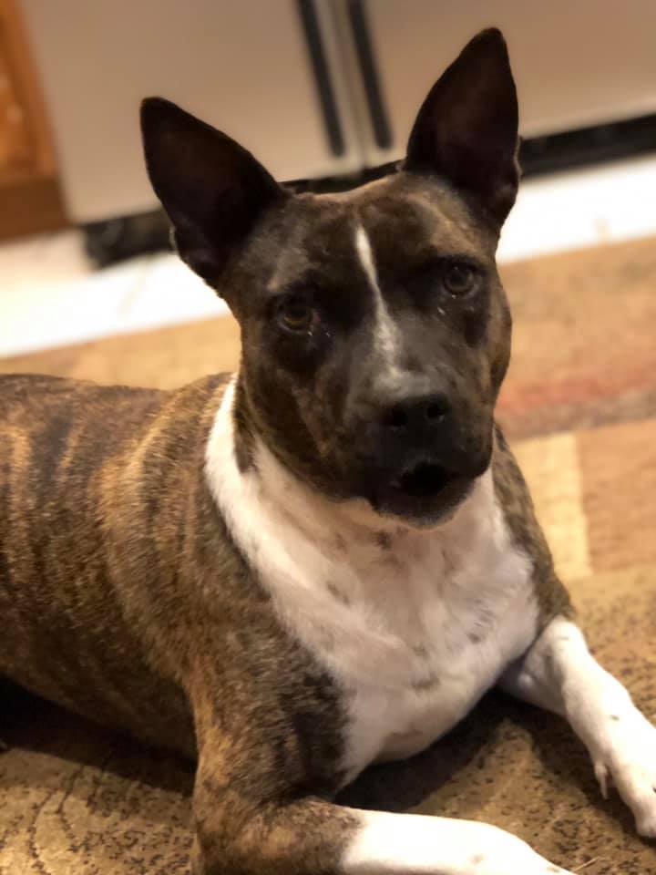 Shaggyarl is a 3-year-old, 40-pound spayed female pit bull terrier mix with a beautiful brindle coat. She has been at the rescue for almost a year. Shaggy is the biggest love bug who likes to give kisses. She loves car rides and travels great. She is house and crate trained and knows basic commands. Shaggy enjoys going for walks and loves to snuggle on the couch for movie night. She would prefer to be the only pet in the household. Find her through Two Ladies Caring Dog Rescue, 931-217-1587, www.petfinder.com/shelters/TN505.html
