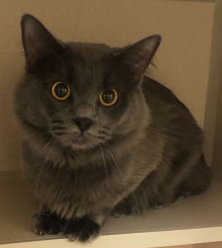 Darwin is a 1-year-old Maine coon mix with a beautiful soft coat and stunning amber eyes. He is litter box trained and his vaccinations are current. This handsome boy would make an excellent companion.