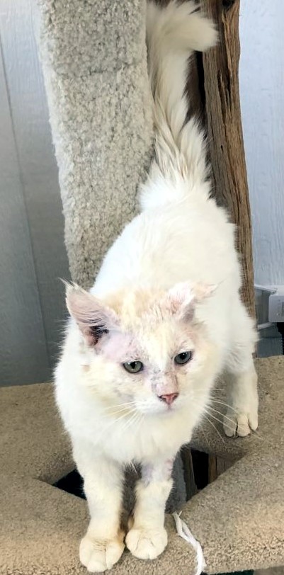 Cowboy is an adult neutered male with domestic medium hair. He is a big, fluffy talkative boy. He has survived on his own living in an industrial complex for probably more than a year. He was in some major fights most likely over food or territory but he is not aggressive with other cats. He initially appeared to be feral but he reverted to being a happy, sweet cat. Cowboy enjoys affection and uses his litterbox. He is FIV positive but can still live a long happy life. Find him through the Humane Society of Dover-Stewart County, 931-305-8212, www.petfinder.com/shelters/TN113.html