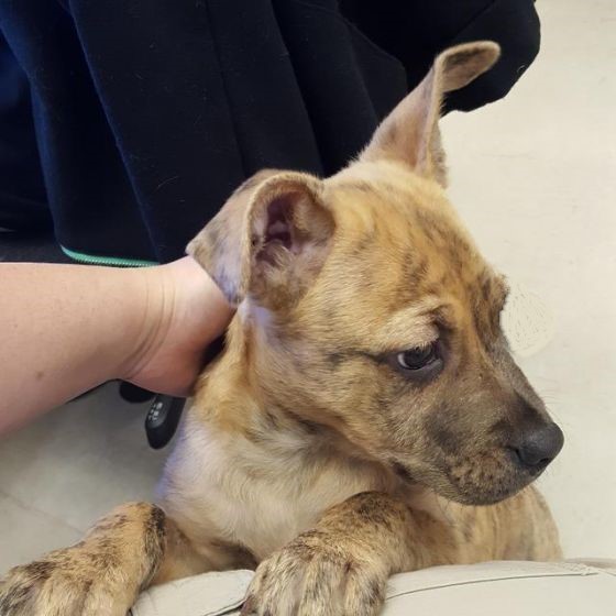Jake is an adult male boxer mix. He is neutered and his vaccinations are current. Jake has an amazing smile and wants to shower you with affection. He is doing great with a leash and potty training.