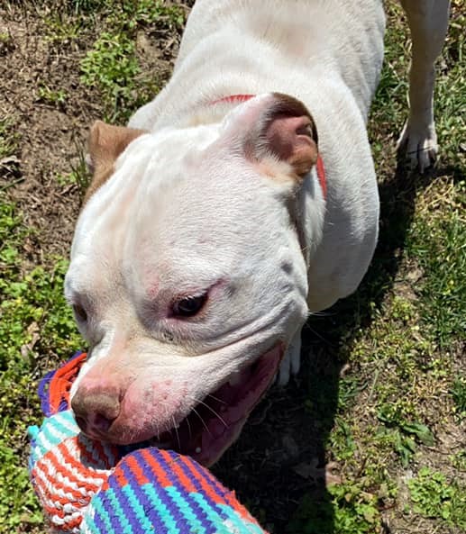 Rex is a 2-year-old neutered male pit bull terrier mix. He is super sweet, very affectionate, and loves to play. His favorite toy is his squeaky tug rope. Rex is looking for a forever home with a loving family to play with and cuddle him. Find him through Sagley’s Biker Bully Farm, 408-355-5493, https://www.facebook.com/Sagleys-Biker-Bully-Farm-131316683635920/