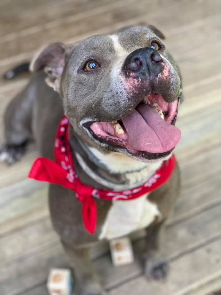 Hamilton, also known as Hammy, is a beautiful 4-year-old blue pitbull terrier mix. He is high energy, very smart, and loves attention, treats and people. He needs to be the only dog in the home. Find him through Sagley’s Biker Bully Farm, 408-355-5493, https://www.facebook.com/Sagleys-Biker-Bully-Farm-131316683635920/