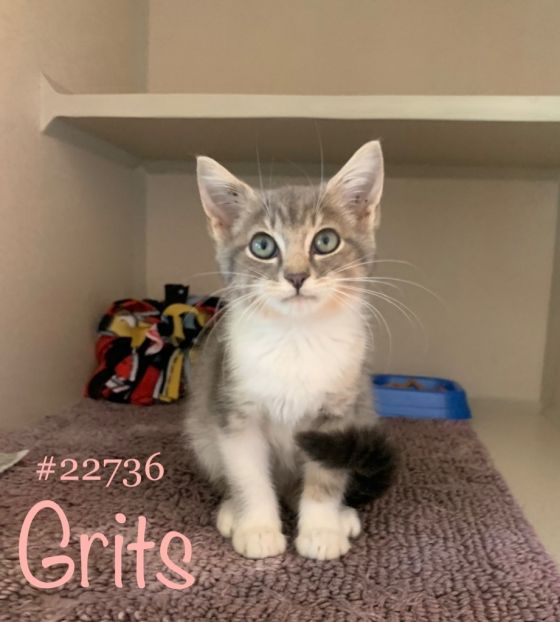 Grits is a sweet, female, grey and white Domestic shorthair kitten with stunning dark blue/green eyes. She is current on vaccinations, and litter trained. If you are looking for a loving companion look no further. Find them at Montgomery County Animal Care and Control, 616 N. Spring St., 931-648-5750, www.facebook.com/MontgomeryCountyAdoptionServices