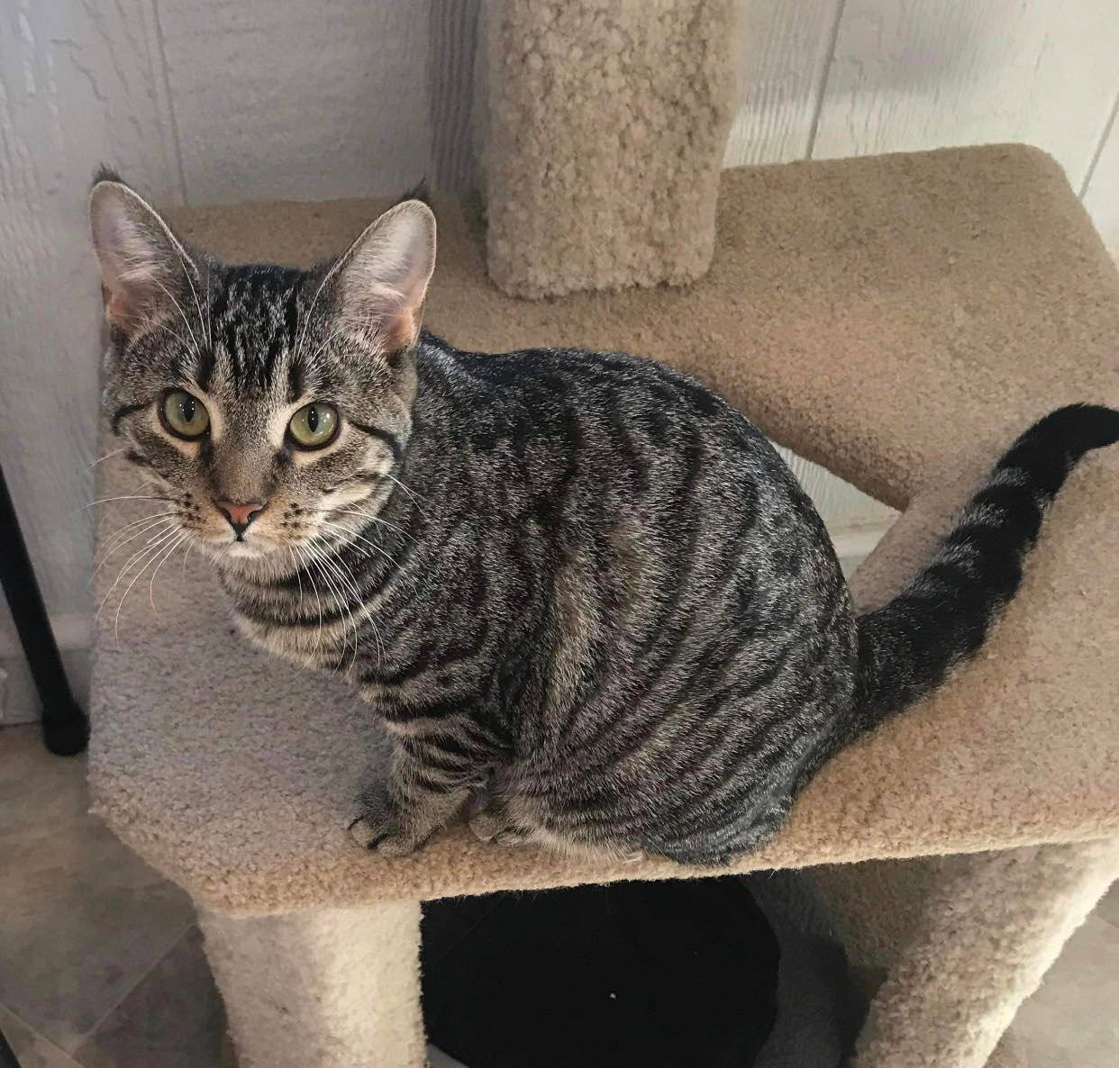 Esme is so sweet and has the most mesmerizing eyes! She is on the petite side, weighing about 8 pounds and is spayed, up to date on vaccinations, and litter trained. Esme loves her toys and enjoys attention. You can find her through the Finders Keepers Cat Rescue, message them on FB or email finderskeeperscatrescue@gmail.com