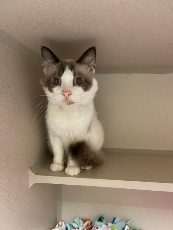 Puma is a young male domestic white and grey short haired kitty. Puma has pretty, distinct, almost mask-like face markings which make him stand out. He is up to date on vaccinations and litter trained. Puma is looking for a family who will shower him with love and affection. Find them both at Montgomery County Animal Care and Control, 616 N. Spring St., 931-648-5750.