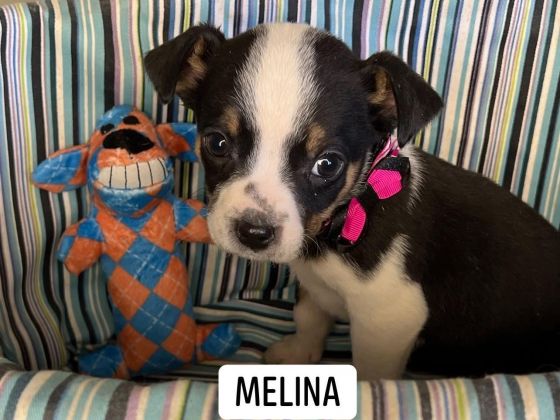 Melina is still available!. Up to date on age-appropriate shots and will be spayed when age-appropriate. She is a 3 and a half-month-old Australian Heeler/Cattle Dog/ Lakeland Terrier mix. She was the smallest in her litter but has the biggest personality! Very playful and sweet. Good with other dogs and children. You can find her through Two Ladies Caring Dog Rescue, 931-217-1587, www.petfinder.com/shelters/TN505.html