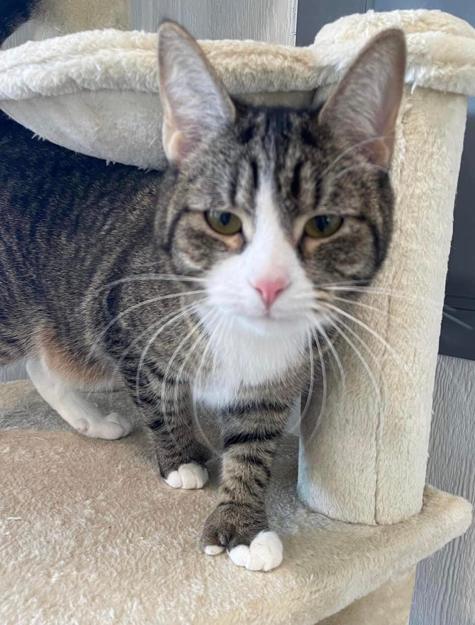 Tig is a very striking one year old male cat with the prettiest coloring. He is fully vetted, neutered and litter trained. Tig is shy at first but can be bribed with wet food. This boy loves his food!! He has one eye that sort of moves on its own but doesn’t affect him or his sight at all. Gets along great with cats and tolerates cat friendly dogs. PPR&C also has a wonderful Cat Cafe in town. To set up a meet and greet and for more information on him please go to https://www.puurrrfectpawsrescue.com or message them through their FB page, Puurrrfect Paws Rescue & Cafe.