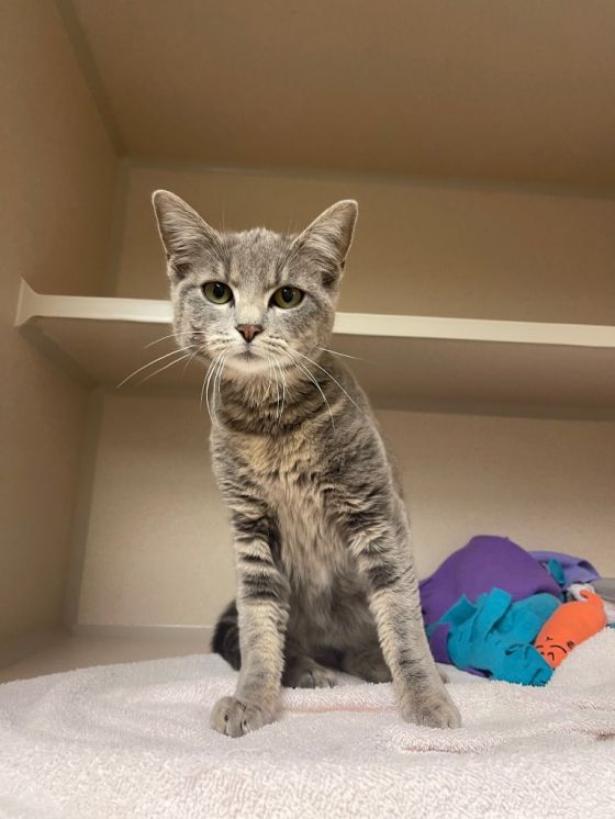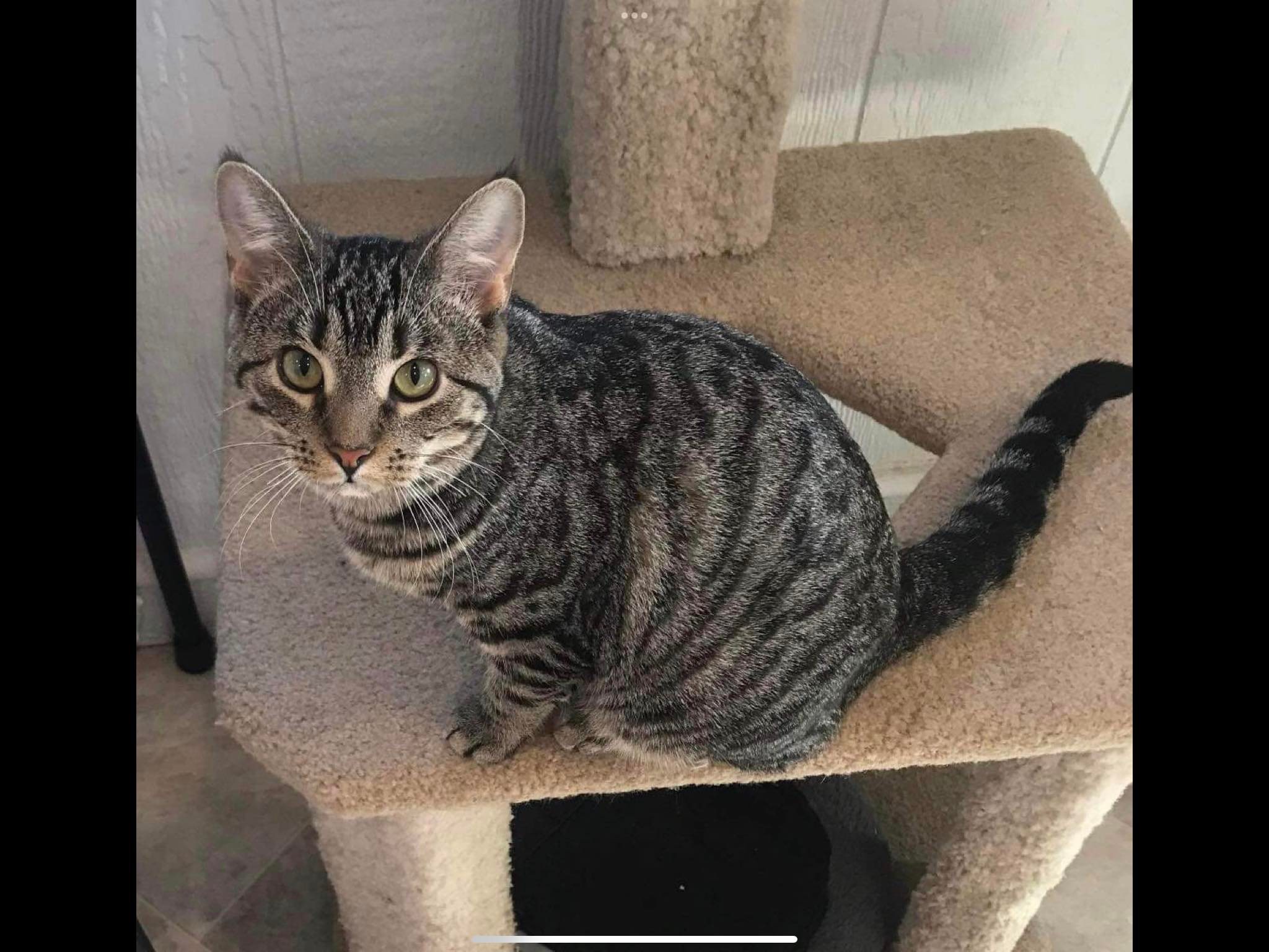 Reagan is an adorable female Tabby just under a year old. She is still looking for her forever family.She is fully vaccinated, dewormed, felv/fiv tested, on Flea and Tick treatment, spayed and litter trained. Reagan can be found through the Cat Adoption Team (CATS)