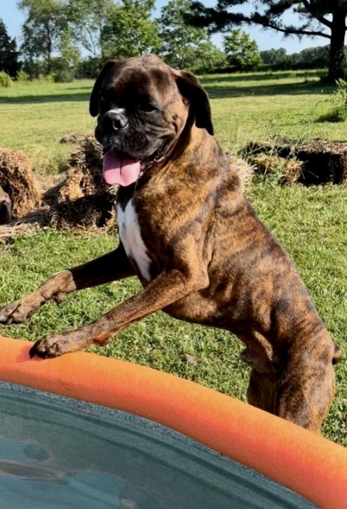 Ares is a gorgeous 4 year old male Brindle Boxer. Ares is very friendly, loyal, smart, quiet and loves kisses. He is good with children and other dogs. Ares is fully vetted, neutered, house and crate trained but he is such a good boy he doesn’t even need to be in his crate once he acclimates to his family. He is such an amazing boy. For more details and information you can find him through Two Ladies Caring Dog Rescue, 931-217-1587, www.petfinder.com/shelters/TN505.html