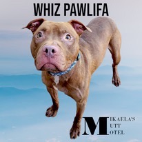Whiz Pawlifa is a 4-year-old male Pitbull mix weighing in at 55 pounds. He is fully vetted, neutered, heartworm negative, microchipped and up to date on Heartworm and flea/tick prevention. He has done well with adults and children. Legend Acres is working with his commands, house manners and social skills around other dogs and he is doing great with crate training! He is a sweet, loving boy looking for his forever family. To find out more about him you can go to www.mikaelasmuttmotel.org/whiz-pawlifa or message them on Facebook at facebook.com/mikaelasmuttmotel. You can also reach them @931-342-2526 and emailing adopt@mikaelasmuttmotel.org