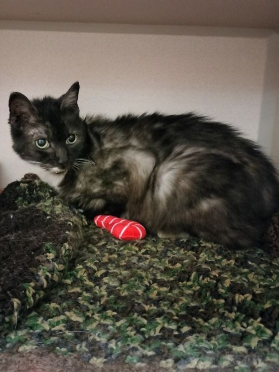Bugsy is a young female Domestic medium hair. She is fully vetted, spayed and litter trained. She is good with cats, dogs and children. She is full of sassy little “catitude” and tons of personality. She is super sweet and while good with other animals she does have a bit of “Diva” in keeping them in their place! She can coexist with other pets with proper introductions and patience for everyone to find their place in the pack. She would be great with older children just due to her personality and while she does well with others, being the only pet would suit her just fine as well. If you think Bugsy will be a wonderful addition to your family, she can be found through the Finders Keepers Cat Rescue, message them on FB or https://www.petfinder.com/member/us/tclarksville/finders-keepers-cat-rescue-tn984/ Or email finderskeeperscatrescue@gmail.com
