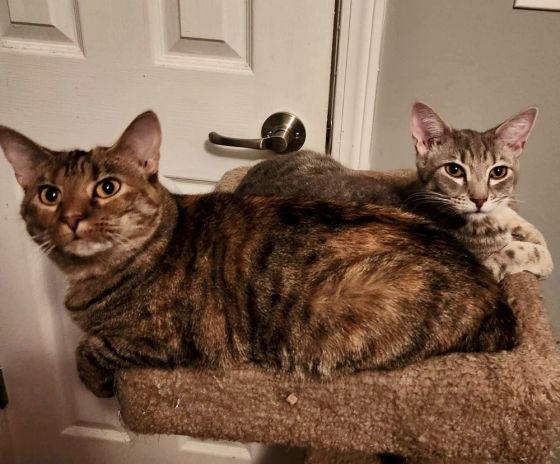 Joyce & Steve are domestic shorthaired cats. They are a bonded Mother/Son pair. Steve was the last remaining kitten to be adopted and they formed a strong bond and do need to be adopted together. They are fully vetted, neutered and spayed and litter trained. They are very easy going and keep each other entertained. They can be found through the Finders Keepers Cat Rescue, message them on FB or https://www.petfinder.com/member/us/tclarksville/finders-keepers-cat-rescue-tn984/ Or email finderskeeperscatrescue@gmail.com