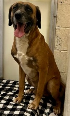 Bandit is an adult male mixed breed, possibly some sort of Mastiff mix. He has started to come into his personality and the staff estimate his age to be around 7 years old. He is happy, loving and very cuddly. Come for a meet and greet with this handsome guy and fall in love with your new best friend! For more extensive details, MCACC will be glad to answer your questions.