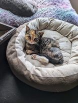 Angelic is a young female domestic shorthair kitty. She is vetted with age-appropriate vaccinations, litter trained and will be spayed either by the end of June or when she hits the required weight. This sweet baby was found in the woods with her litter mates and her back leg was so badly tangled in a fishing line that it was decided it was best to amputate it. Angelic has adapted instantly to being a tripod kitty and runs and wrestles with her foster siblings and just purrs nonstop. For what she has been through this girl still has so much love to give and will make a fabulous addition to your family! To set up a meet and greet and for more information on all the cats please go to https://www.puurrrfectpawsrescue.com or message them through their FB page, Puurrrfect Paws Rescue & Cafe.