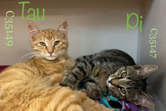 Tau & Pi are young male Domestic Shorthair cats. They are litter trained, fully vetted, and neutered. They can be adopted together or separately.  Come check them out! They are ready to go home the same day since they are neutered! They will make someone a wonderful family addition. Find them both at Montgomery County Animal Care and Control, 616 N. Spring St., 931-648-5750.