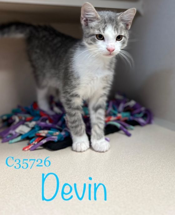 Devin is a male Domestic Shorthair kitten. He is fully vetted, age appropriate shots and litter trained. Come check him out! Find them both at Montgomery County Animal Care and Control, 616 N. Spring St., 931-648-5750, www.facebook.com/MontgomeryCountyAdoptionServices