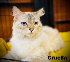 Cruella is a lovely 3-year-old medium-haired cat. She has similar coloring as a Siamese with striking eyes and is just the sweetest gal. She is fully vetted, spayed and litter trained. This girl is super calm, loves to snuggle and sleep and does great with dogs and other cats. She will be such a fun new family member! To fill out an application and set up a meet and greet and for more information on all the cats please go to https://www.puurrrfectpawsrescue.com or message them through their FB page, Puurrrfect Paws Rescue & Cafe.