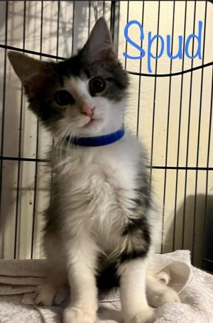 Spud is a young male medium hair/Tabby mix kitten. He is fully vetted, litter trained, neutered and good with children, dogs and other cats. Spud can be found through the Finders Keepers Cat Rescue, for an application and more information please message them on FB or https://www.petfinder.com/member/us/tclarksville/finders-keepers-cat-rescue-tn984/ Or email finderskeeperscatrescue@gmail.com