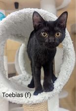 Toebias is a 5-month-old female polydactly which just means she has an extra toe bean on each paw! Fully vetted, combo negative, spayed and microchipped. She loves to play with other cats and is fine with calm dogs. She is waiting for her forever home where she can run and play with lots of toys and get lots of snuggles! This sweet girl deserves her own loving family. To fill out an application and set up a meet and greet and for more information on all the cats please go to https://www.puurrrfectpawsrescue.com or message them through their FB page, Puurrrfect Paws Rescue & Cafe.