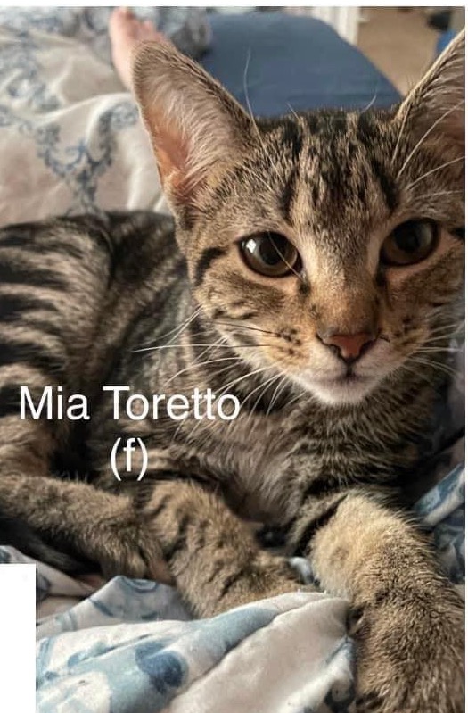 Mia Toretto is a 4-month-old female Domestic shorthair kitten. Up to date with age-appropriate shots. She is fascinated with wand toys and loves to crawl up in your lap for love and scratches. She isn’t too excited about dogs but might be able to adapt to them if they are calm and laid back. Great companion and is good with other cats. Just a sweetheart! To fill out an application and set up a meet and greet and for more information on all the cats please go to https://www.puurrrfectpawsrescue.com or message them through their FB page, Puurrrfect Paws Rescue & Cafe.