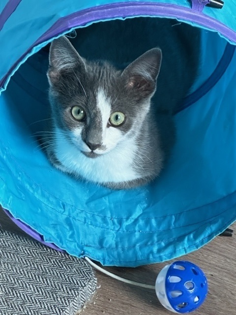 Chip is a small gray & white male kitten. He is fully vetted, neutered and litter trained. Chip loves toys of all kinds and when he isn’t playing or napping, he’s wrestling with his brother Dale who is also available for adoption. He starts out a little shy at first but warms up very quickly!! Chip can be found through the Finders Keepers Cat Rescue, for an application and more information please message them on FB or https://www.petfinder.com/member/us/tclarksville/finders-keepers-cat-rescue-tn984/ Or email finderskeeperscatrescue@gmail.com