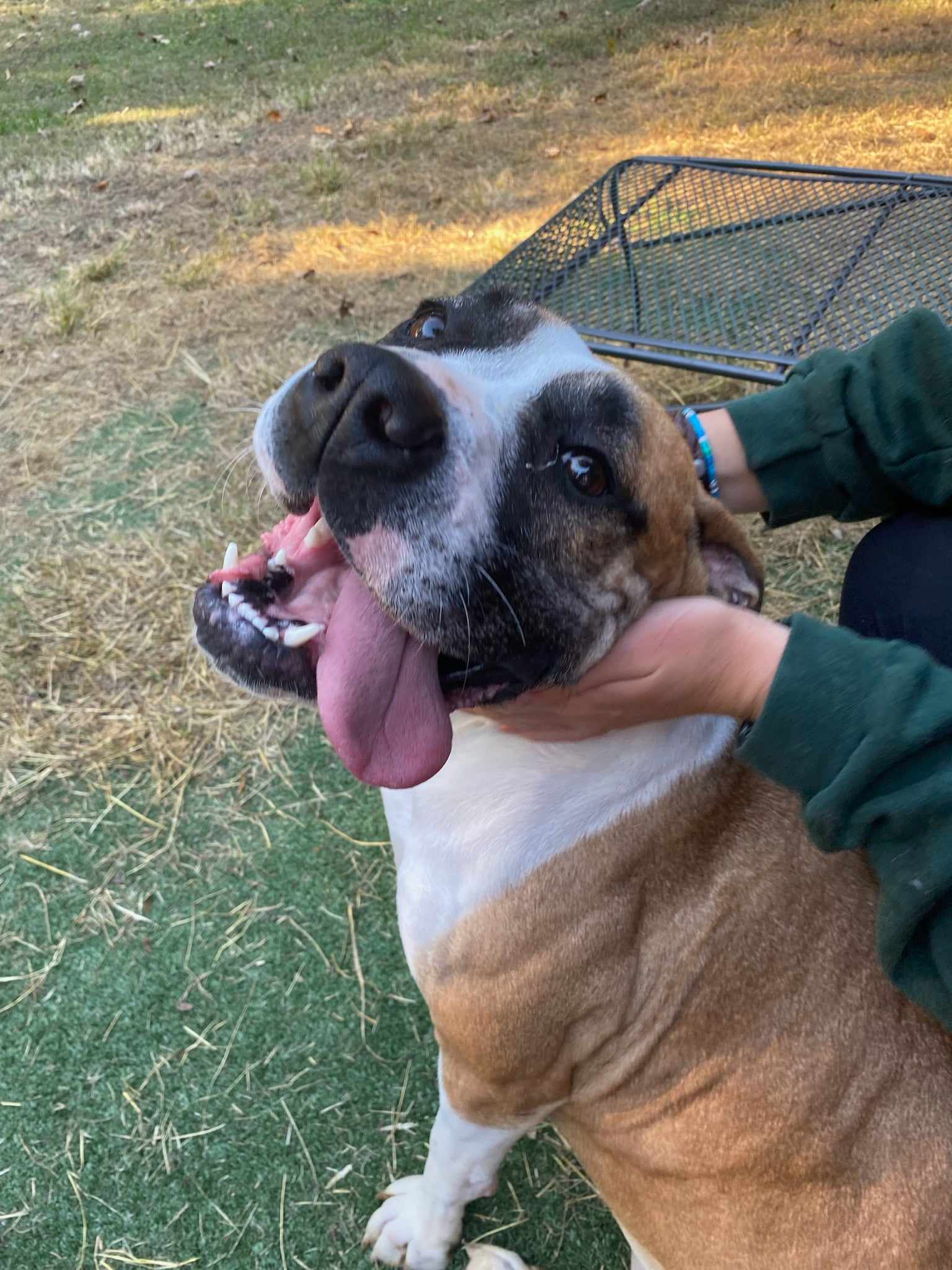 Daisy is a 3-year-old female Boxer mix. Fully vetted, up to date on rabies, good with kitties and loves children. She is a dog selective so might be best as the only pet in the home for starters. She is a big girl, loves to play and would love a fenced in yard, long walks and lots of activities to keep her busy. If you are looking for that special new family member and would like an application and more information, please reach out to Lisa at Sagley’s Biker Bully Farm, (785) 207-5641 or https://www.facebook.com/SBBF.Rescue.