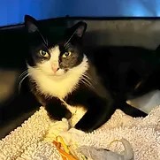 Sweet Lorraine is a 1-year-old female Tuxedo cat. She is fully vetted, spayed and litter trained. She is a little shy initially but warms up quickly. She loves a cat house or lair to call her own. She is super low energy, and once she warms up, she will happily socialize with you. She is happy snoozing on your lap when she isn’t playing with toys. To fill out an application and set up a meet and greet and for more information on all the cats please go to https://www.puurrrfectpawsrescue.com or message them through their FB page, Puurrrfect Paws Rescue & Cafe.