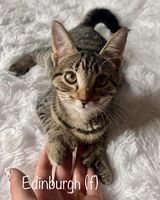 Edinburgh is a 4-month-old Polydactyl girl! She has 3 extra toes on each front foot and thumbs on her back feet! Quite a lot of extra toe beans!! This sweetheart thrives on attention and does well with other cats and children. Might do well with respectful, calm dogs too. She is litter trained, fully vetted and scheduled to be spayed shortly. Kittens under 6 months need to be adopted with another kitten/cat or go to a home that already has a friendly cat. To fill out an application and set up a meet and greet and for more information on all the cats please go to https://www.puurrrfectpawsrescue.com or message them through their FB page, Puurrrfect Paws Rescue & Cafe.