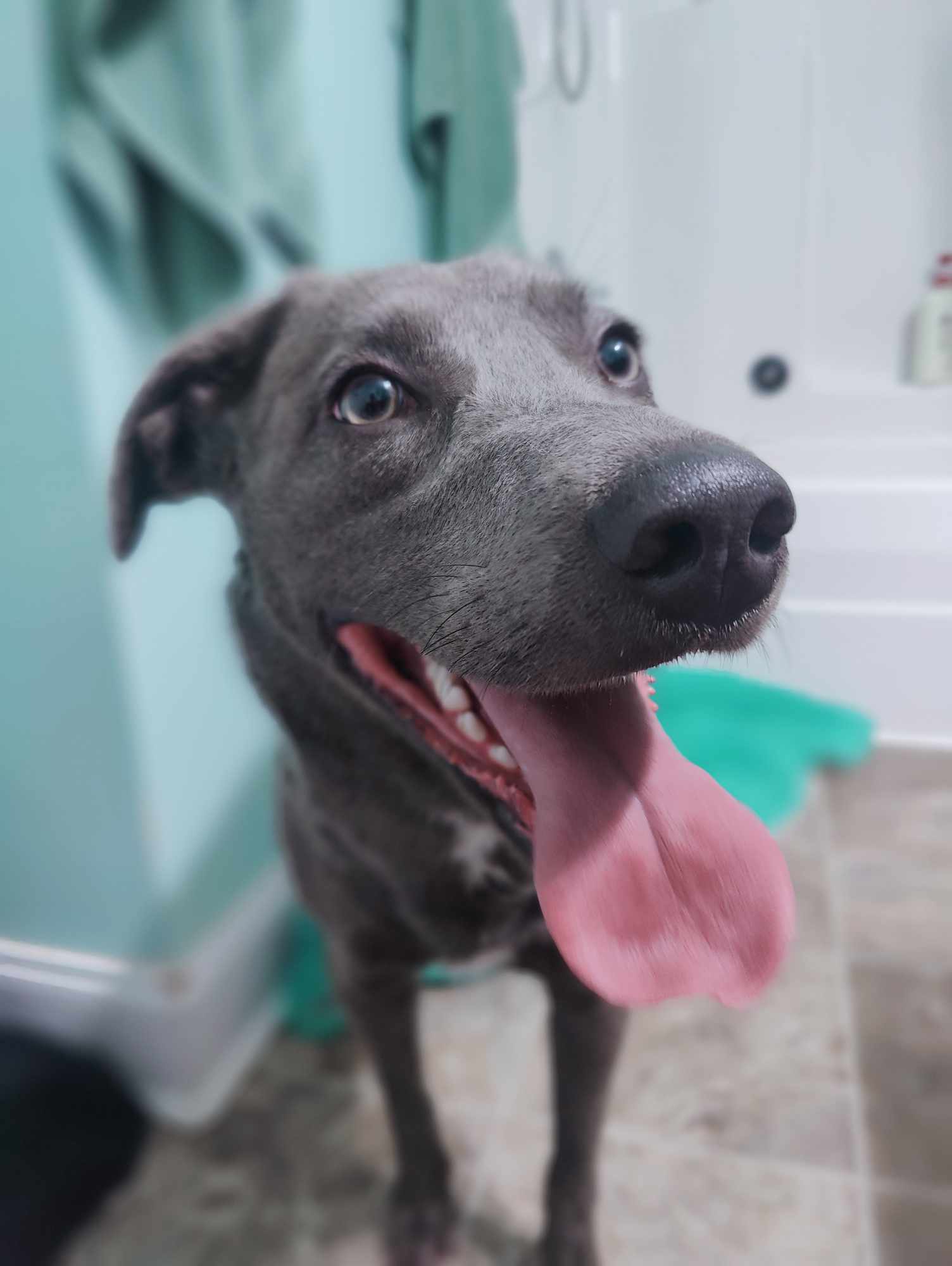 Soji means adored in Japanese and this girl is just that. She is a Great Pyrenese/ Staffordshire mix on her mother’s side and a Rhodesian Ridgeback/Weimaraner on her father’s side. She will be 2 in March, is fully vetted and crate and house trained. She is not spayed yet. She needs a home with children over 10 and has a ton of energy! She will do best with an active, outdoor loving family. She plays with other dogs but is selective. She is a bit timid at first when meeting new people but warms up quickly and is very food motivated so training will be easy. She does great with grooming, no issues with nail trimmers and dryers. If you are looking for a great addition to your family, a loyal companion, want more information on Soji and an application please email mmcbride@kayleesisland.com