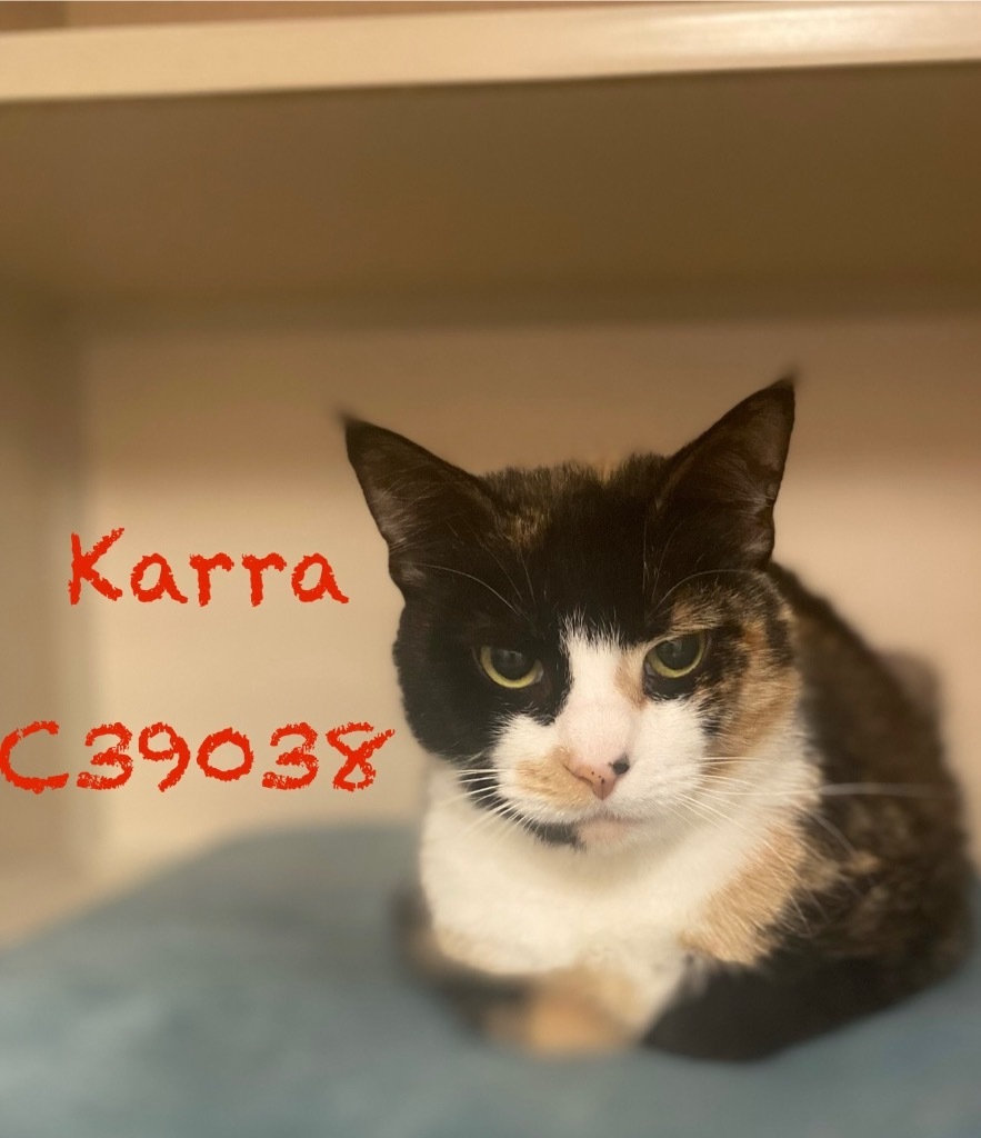 Karra is a 3-year-old female Calico cat. She is fully vetted, litter trained and will be spayed before heading to her new family. She is all about love and attention and will make a great companion. She prefers a home without children. Find them both at Montgomery County Animal Care and Control, 616 N. Spring St., 931-648-5750, www.facebook.com/MontgomeryCountyAdoptionServices