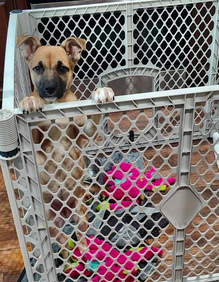 Scrappy is a 9-week-old female Shepherd mix. This little thing loves her food, loves toys, is vetted with age-appropriate shots and working on her house training. She is extremely vocal and will let you know when she wants something! Scrappy is one of a litter of 6 saved from euthanasia and sadly due to poor conditions and lack of treatments before rescue was able to intervene, she is now the only survivor. She is funny, energetic with lots of puppy energy and will make a great addition to your family! Scrappy’s adoption fees come with 50% off 2 months of service from Parapooper Scoopers (adopters must live in their service area). Please call Michelle @ 812-827-9015 for more details and an application.