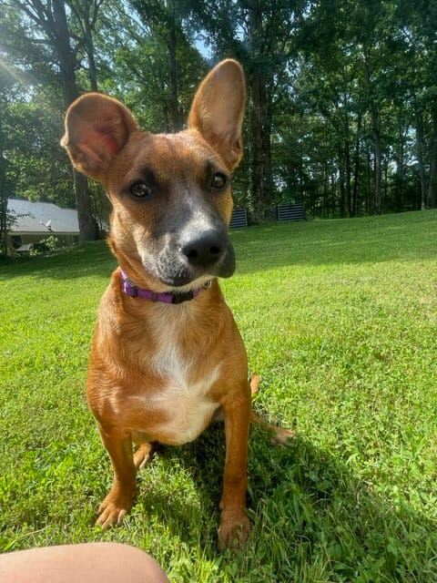 Reba is a 6-month-old female Cattle dog mix. Mom is a Red Heeler mix. She is fully vetted, spayed and microchipped. Reba is currently weighing about 20 pounds and will probably be a medium sized dog. She has been around other dogs and young children. Unsure about cats. She has a lot of young dog energy, so a large fenced yard and plenty of toys and activities to keep her busy will be great! Reba can be found through Companion Pet Rescue of Middle Tennessee, for more information please email adoptions@cprmidtn@gmail.com.
