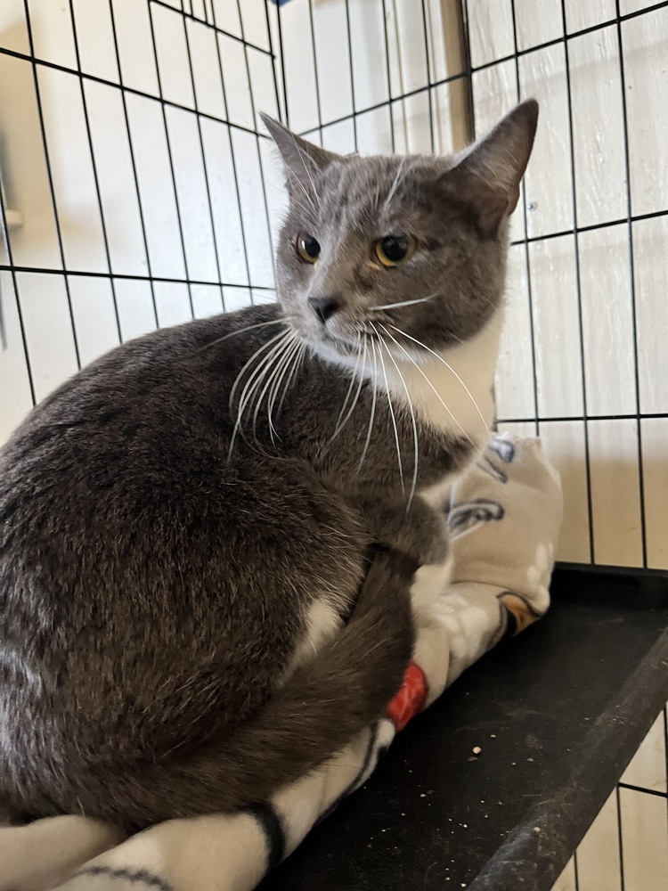 Oda Mae is an adult female Domestic Shorthair cat. She is fully vetted, litter trained and spayed. She is very friendly, vocal, a little sassy and this girl won’t “Ghost” you (IYKYK) She will do well in a calmer home and seems to do well with other cats. If you would like an application and more information, please message them on FB or https://www.petfinder.com/member/us/tclarksville/finders-keepers-cat-rescue-tn984/ Or email finderskeeperscatrescue@gmail.com.
