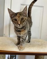 Syudi is a beautiful 12 week old Torbi, polydactyly baby. This little nugget has 6 toes on each foot!! She is so playful, fully vetted, spayed and litter trained. She loves her kitten friends and will play with anyone who will play with her. She loves attention and is a great cuddlebug. Great with calm dogs and other cats. She will be a fun addition to your family. To fill out an application, set up a meet and greet and for more information on all the cats please go to https://www.puurrrfectpawsrescue.com or message them through their FB page, Puurrrfect Paws Rescue & Cafe.