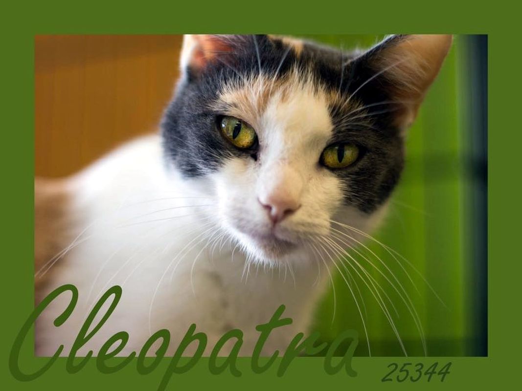 Cleopatra is a young female domestic short hair with stunning green eyes. She is very friendly and affectionate, and loves people.