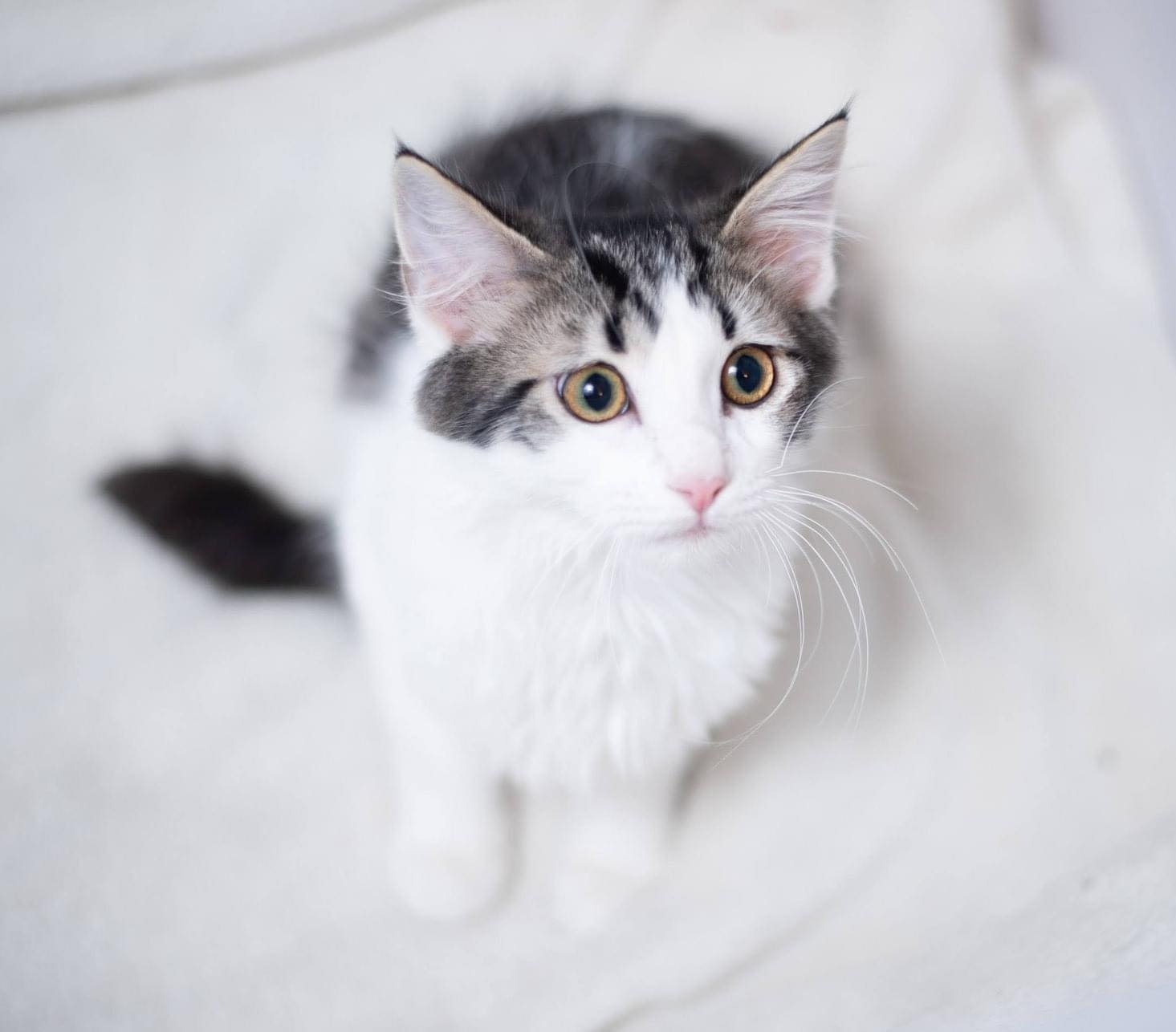 Hamid Gustavas is a cheeky little 4 month non stop whirling ball of white fluff! He is fully vetted, neutered and litter trained. He is very social and will grab wrappers, toys, just about anything he can get a hold of and run zoomies through the house. He is so funny and loving. He will be a wonderful addition to your family. To fill out an application, set up a meet and greet and for more information on all the cats please go to https://www.puurrrfectpawsrescue.com or message them through their FB page, Puurrrfect Paws Rescue & Cafe.