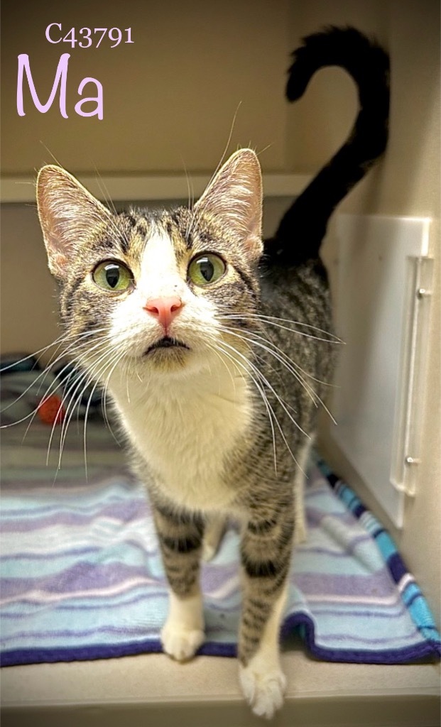 Ma is a 3 year old female Adult Domestic Shorthair mix. She is fully vetted, litter trained and spayed so she can go home with her forever family the same day.