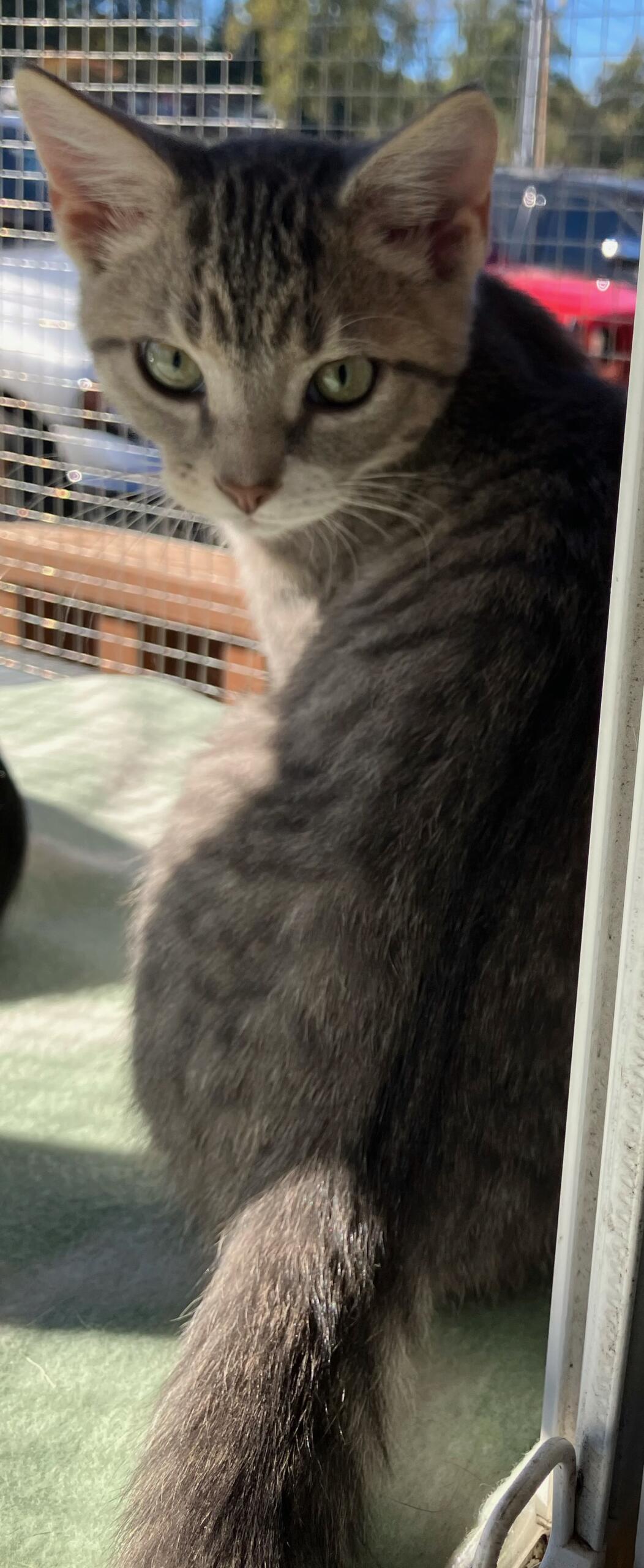 Bing Pawsby is a sweet male Domestic Shorthair kitten. This boy is litter trained, neutered and fully vetted. Bing is a climber! He is so happy to be your constant companion. Where you go, he goes. Bing loves attention. He is great with cats, dogs & children with slow introductions. Bing just loves everyone. If you would like an application and more information please message the rescue on FB or https://www.petfinder.com/member/us/tclarksville/finders-keepers-cat-rescue-tn984/ Or email finderskeeperscatrescue@gmail.com.