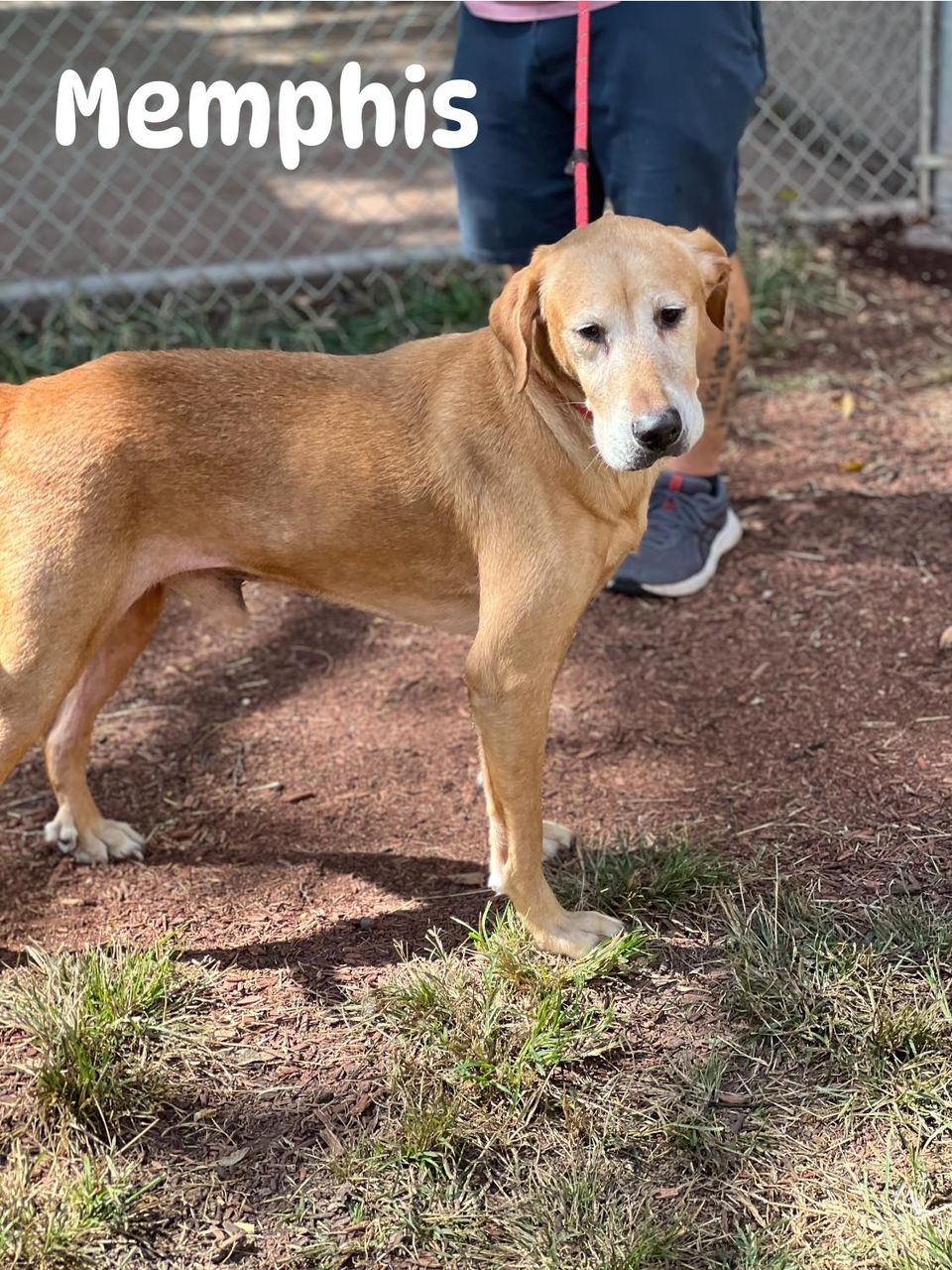 Memphis is a 7 year old male Golden Retriever mix. He is fully vetted, neutered and currently weighs 68 pounds. He is house trained and good with kids and cats. He would be a great adventure buddy. He is a sweet boy and loves being outside and getting affection. He does seem to do best with Male dogs.
