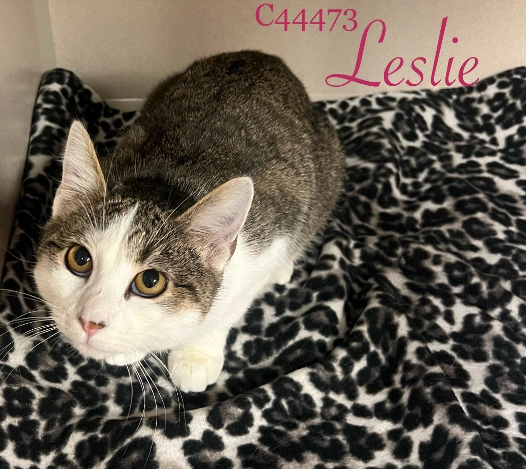 Leslie is an adult female Tabby & White domestic shorthair. She is fully vetted, will be spayed and is litter trained. Leslie will do very well in a home that has plenty of enrichment toys to keep her happy. She is just waiting for her forever family.