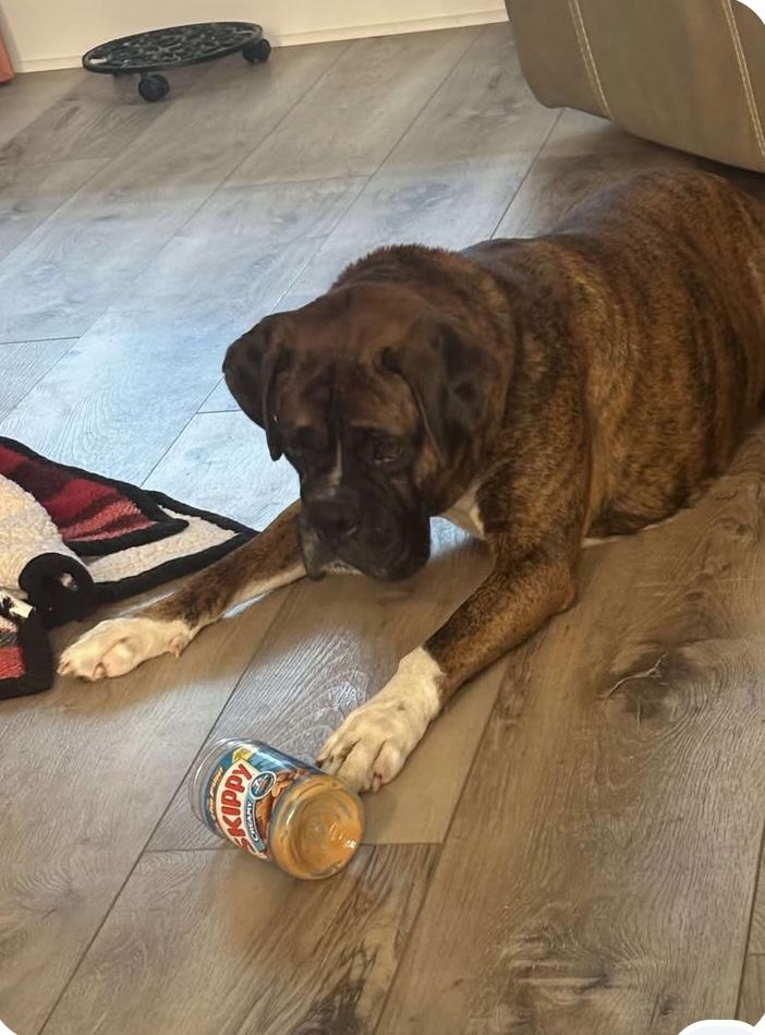 Buckley is a 3 year old male Boxer. He is a big guy weighing around 60 pounds. He is fully vetted, neutered and house trained. He knows some basic commands and walks pretty well on his leash but can pull if he gets excited so he would possibly do better with a harness to help his impulses and easily and smoothly correct his pulling. He will play tug of war with all his rope toys and tries to play fetch but prefers to keep the ball for himself. He is good around other dogs but needs a cat free home please. Buckley can play rough just due to him not being aware of his size, but settles down nicely and becomes a couch potato. You can find him and fill out an application at our website twoladiescaringdogrescue.org or call 931-401-6737 and FB Two Ladies Caring Dog Rescue.