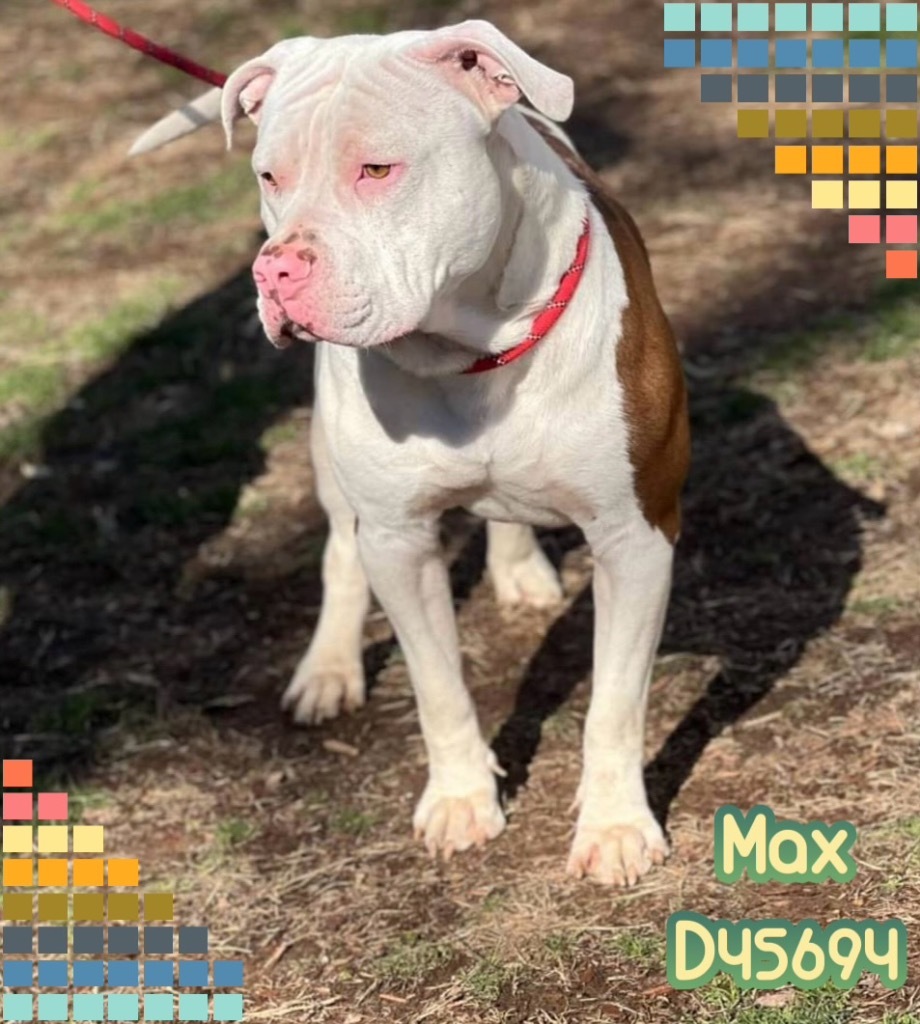 Max is an adult male year and a half old Pit Bull Terrier. Max is fully vetted and will be neutered and microchipped upon adoption. He is a bigger guy weighing about 77 pounds and does fine with other dogs but seems to prefer medium to smaller dogs. He is house trained and enjoys all kinds of toys. Meet and greets are required if there are other fur siblings in the home. Please do your due diligence if you are in an apartment or on Post as to breed restrictions.