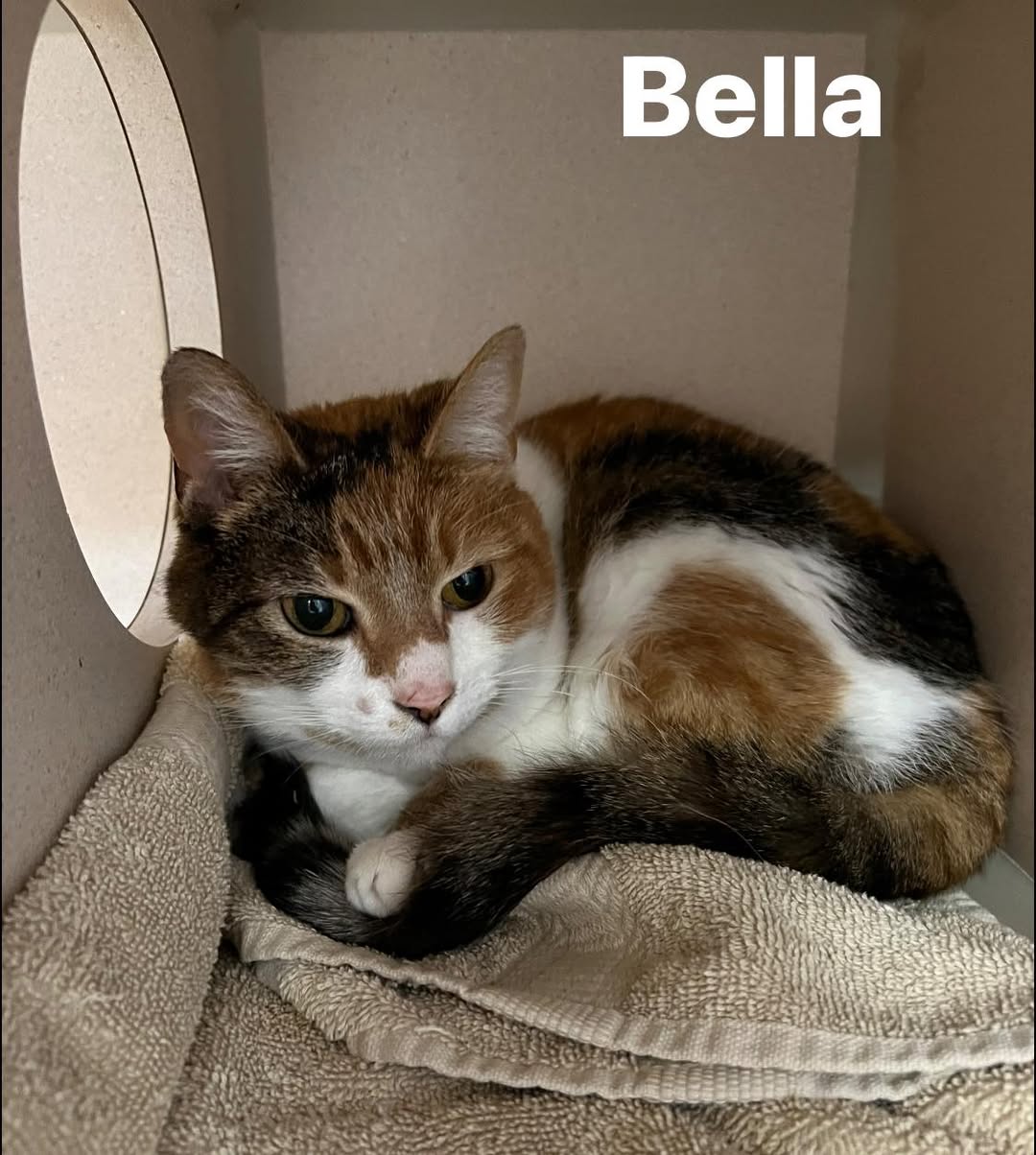 Bella is a 12 year old senior Calico gal. She is fully vetted, spayed and litter trained. She just wants her own family to love her and a home to spend her golden years. Come visit her in the Cat room.