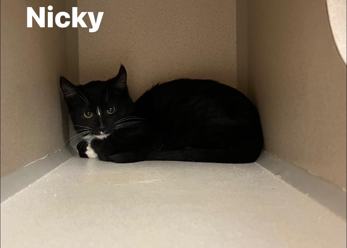 Nicky is a 16 week old female domestic shorthair/Tuxedo kitten. She is fully vetted, will be spayed and microchipped upon adoption and litter trained. She is a sweetheart and will make someone a great addition to their family. Come see her in the Cat Room.
