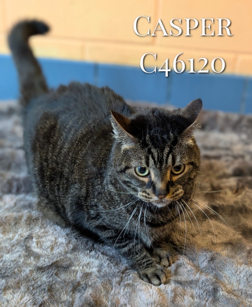 Casper is an adult large male Domestic shorthair. He is fully vetted, litter trained and neutered. He can go home as soon as he is microchipped. Come see him in the Cat Room.